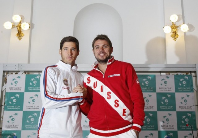 Danas je u Novom Sadu održan žreb za duel 1. kola Svetske grupe Dejvis Kupa u kojem će reprezentacija Srbije od petka do nedelje dočekati selekciju Švajcarske u dvorani Spens.