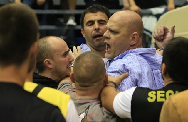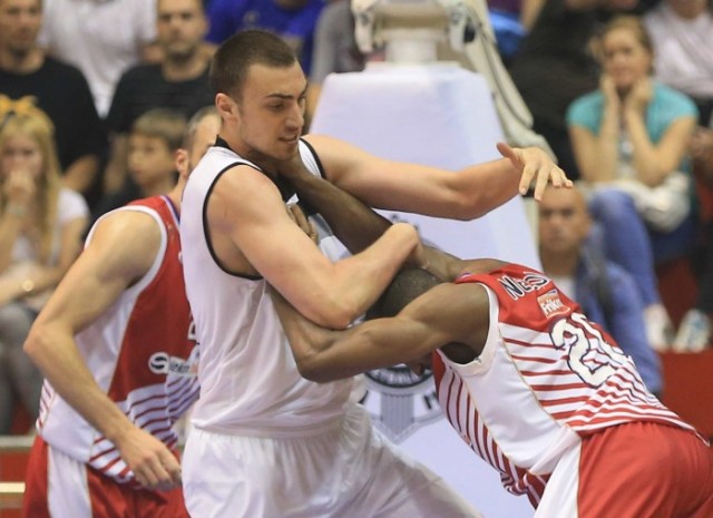 U prvom finalnom meču plej-ofa Košarkaške lige Srbije u kojem se sastaju Partizan i Crvena zvezda viđeno je od svega pomalo, a košarke najmanje. Izvođenje ekipe sa terena, tuča, prekid...