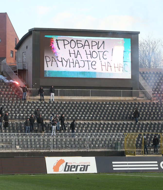 U danu kada su navijači Crvene zvezde ispratili svoje fudbalere u Novi Pazar na megdan istoimenoj ekipi, navijači aktuelnog lidera Jelen Superlige su posetili svoje ljubimce na treningu na stadionu u Humskoj. Grobari su na svim ulazima na stadionu upalili po jednu baklju, a na video bimu su se vrteli sveže montirani navijački video klipovi.