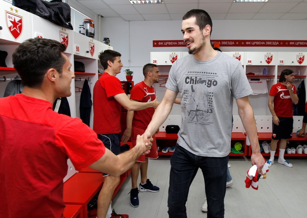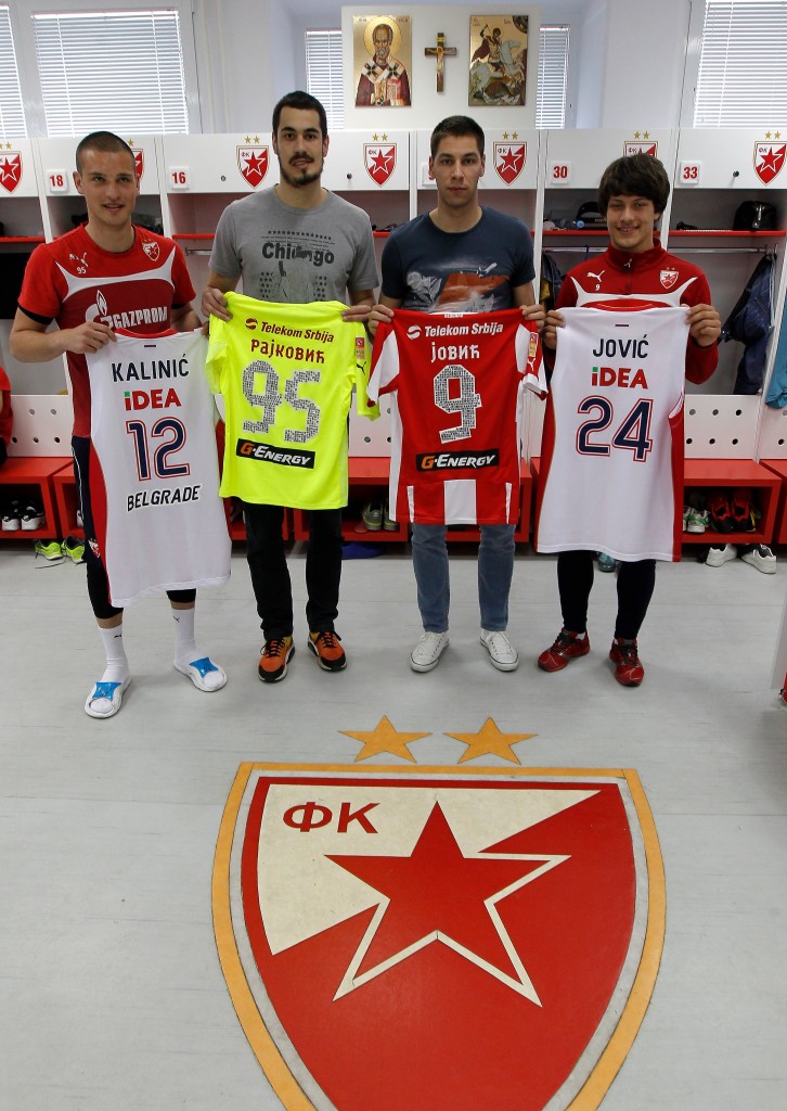 Košarkaši crveno-belih posetili su fudbalere uoči večitog derbija, ne bi li im preneli pelcer za pobedu nad velikim rivalom. Nikola Kalinić i Stefan Jović svratili su do stadionma ‘Rajko Mitić’, i tom prilikom ispunili želju kapitenu fudbalera Predragu Rajkoviću da dobije Kalinićevdres.