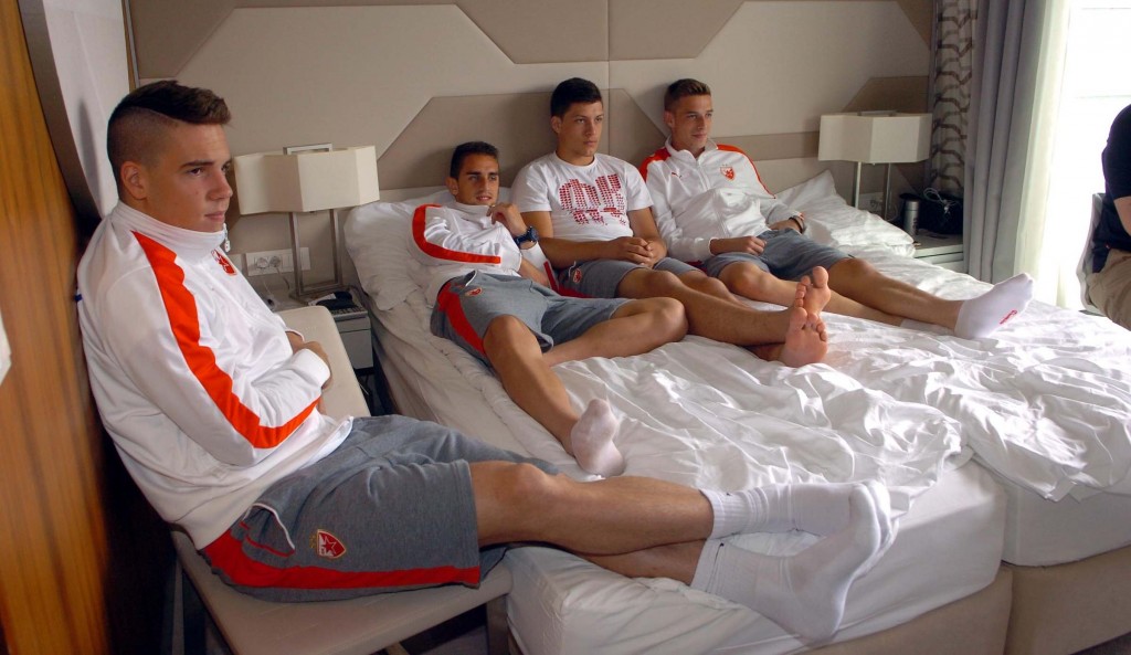 Svi gleadje ‘Orliće’, pa kako to onda ne bi činili i profesionalni fudbaleri. Od izabranika Veljka Paunovića mogu mnogo da nauče i naši ‘Orlovi’, a saigrače Rajkovića, Grujića i Jovanovića gledali su sa priprema, okupljeni po sobama, igrači Crvene zvezde. Uz njih su posebno bili oni koji zbog povreda nisu mogli da otputuju na prvenstvo sveta – Mihailo Ristić i Luka Jović.