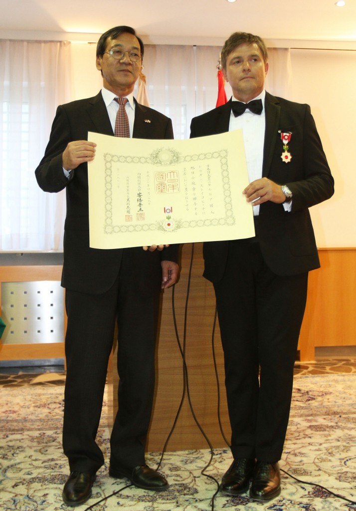 Draganu Stojkoviću uručeno je prolećno carsko odlikovanje za 2015. godinu za izuzetan doprinos u uspostavljanju i unapređenju prijateljskih odnosa s Japanom.