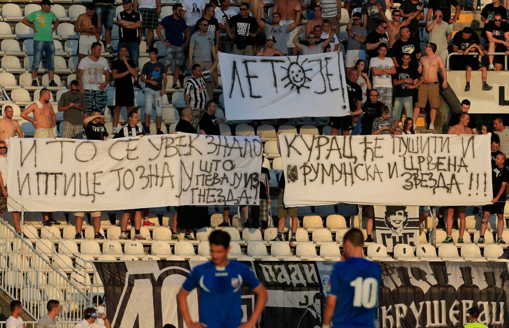 Preformans su imali i Grobari. Najvatrenije pristalice Partizana na „jugu“ su prvo odale počast tragično nastradalom Savi Milojeviću iz Ćuprije, a potom su prozvali sportskog direktora Crvene zvezde Zvezdana Terzića, kao i sledećeg rivala u kvalifikacijama za Ligu šampiona, Steauu. Pogledajte kako je to izgledalo kroz objekitv naših fotoreportera.