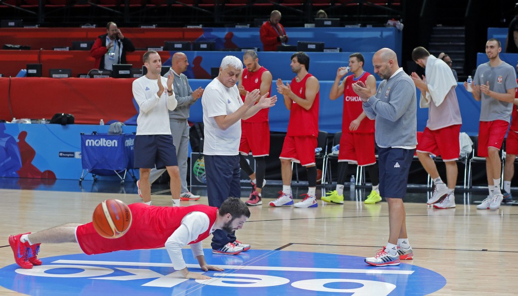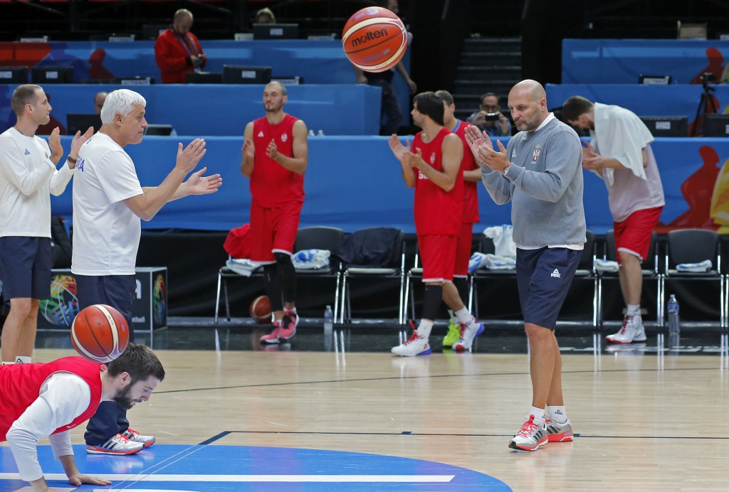 Spremaju se naši momci za Finsku i za naredne rivale. Sudeći po fotografijama, šut je oprobao i selektor. Nije majstor zaboravio da igra basket, ne drži se Muta za glavu sigurno zbog šuta Đorđevića… Možda je Nikolić uzeo loptu u ruke, pa je to izgledalo kao nedavno...