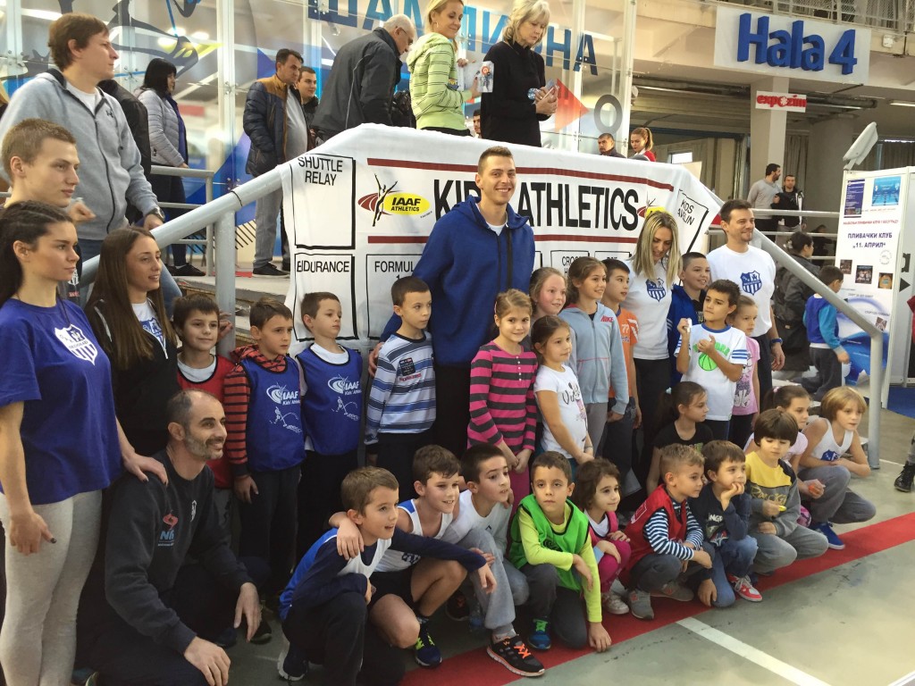 Tokom celog dana družili su se sa decom iz Atletskog kluba OAK Beograd i Voždovac, slikali i igrali na atletskom terenu.