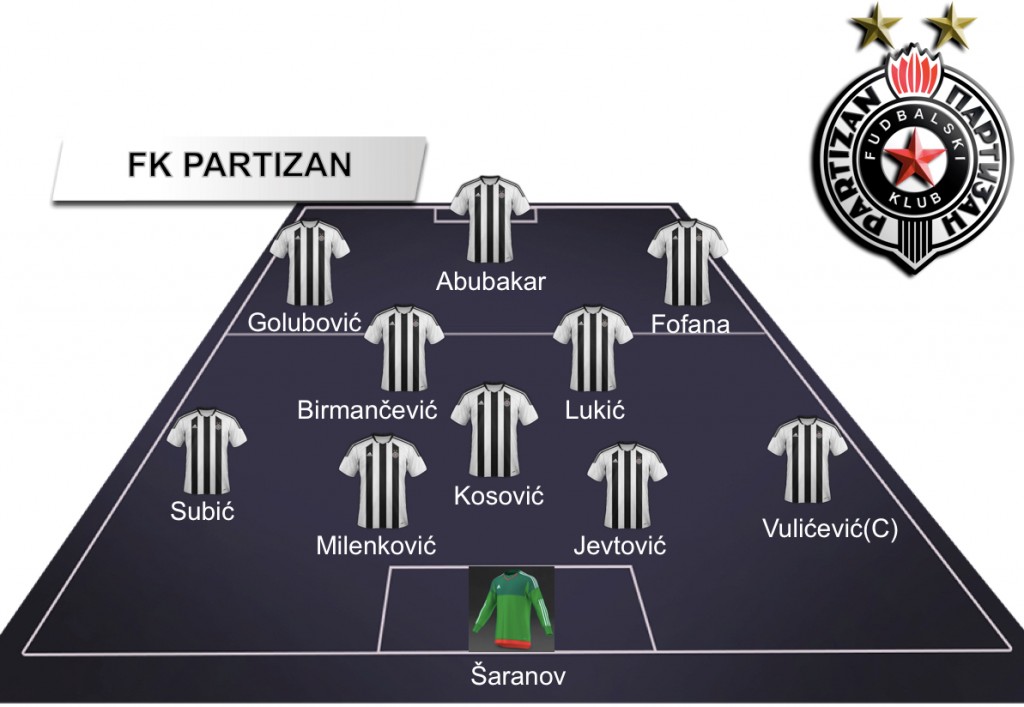 Partizan: Šaranov, Vulićević, Subić, Jevtović, Milenković, Kosović, Lukić, Birmančević, Fofana, Golubović, Aboubakar.