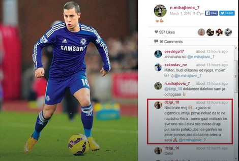 U pitanju je fotografija Edena Azara, fudbalera Čelsija, a komentar je, pa, blago rečeno nesportske sadržine: