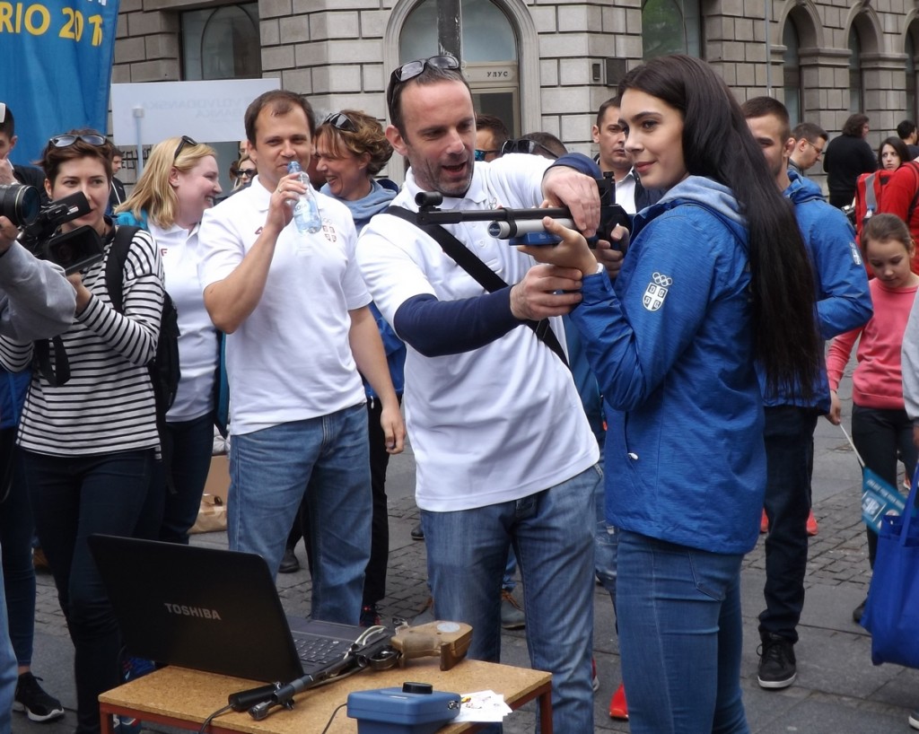 Oprobali su se potom i drugi sportisti. Pušku je uzela Milica Mandić, olimpijska šampionka u tekvondou. Posle kraćih instrukcija Stevana Pletikosića, Mandićeva je pogodila „desetku“, pobrala aplauze, ali potom i otkrila da nije baš početnik.
