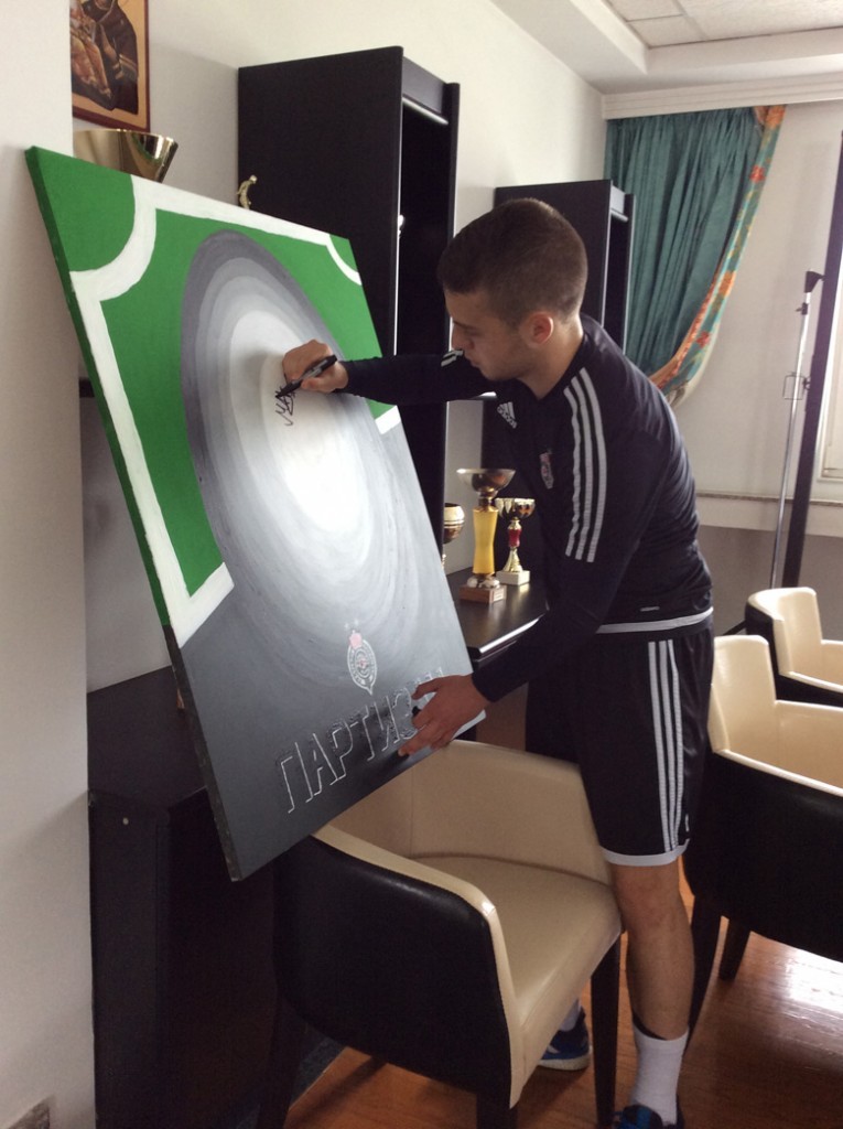 Posebno inspirisan crno-belim timom za koji navija od detinjstva, Moma je u akril tehnici na platnu za Uskrs uradio sliku veličine 80×100 cm na kojoj se nalaze i potpisi igrača Partizana.