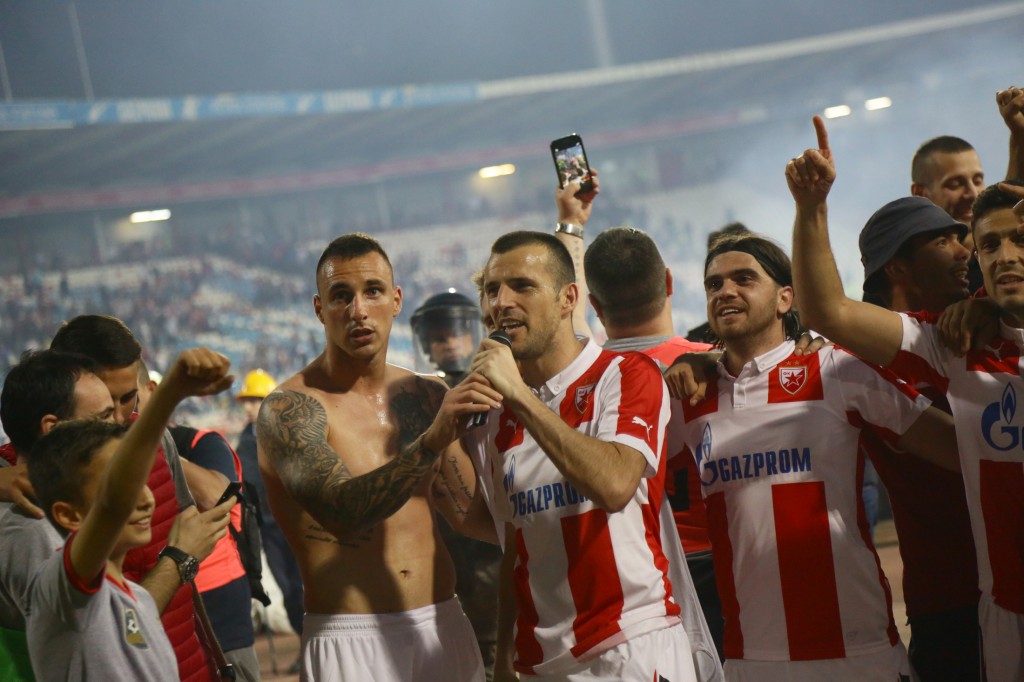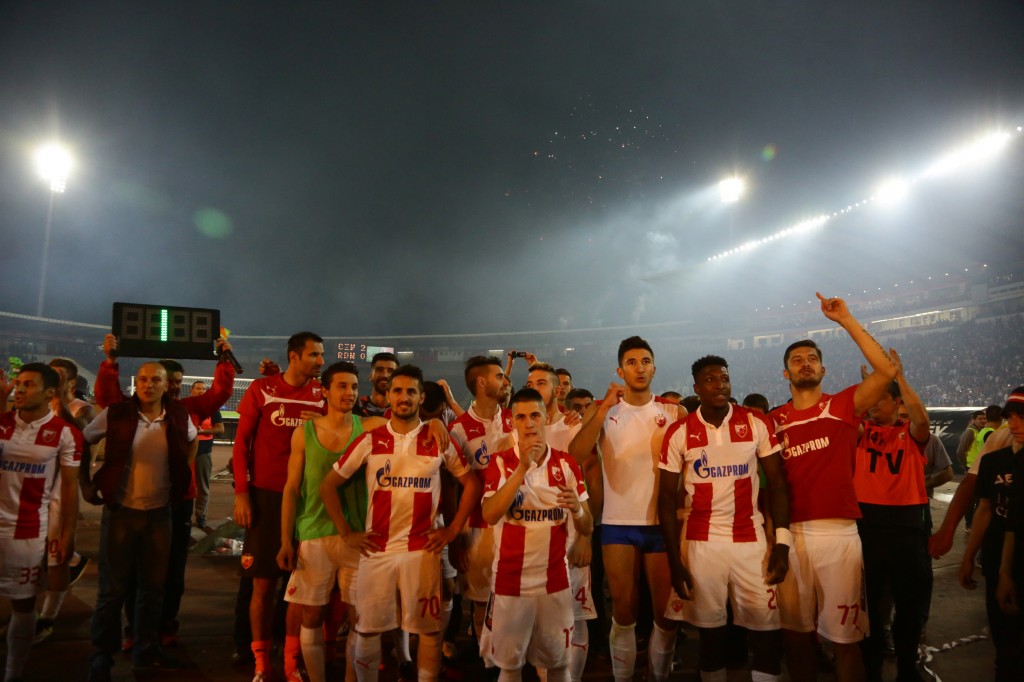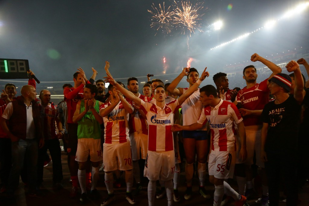 Navijači Crvene zvezde umeli su da na pravi način proslave titulu šampiona Srbije, sjajnom atmosferom, vatrometom, bakljadama, pa i lepim golovima.