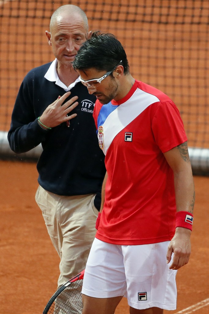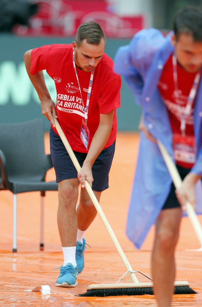 Prvi meč četvrtfinala Dejvis kupa između Srbije i Velike Britanije je prekinula kiša, ali loše vreme u Beogradu nije sprečilo navijače da dođu u velikom broju.