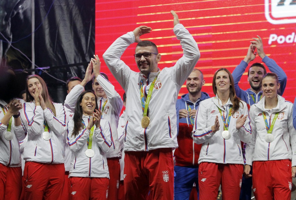 Bravo, heroji! Ponosni smo na vas, heroine! Srbija je dočekala svoje idole. Onako kako to i doliči, više od deset hiljada ljudi uzvikivalo je imena naših zlatnih sportista, najboljih srpskih ambasadora u svetu. Prvo su izašle košarkašice, potom kajakaši, odbojlašice, tekvondisti, košarkaši, rvač i vaterpolisti. Orila su se imena šampiona, a najviše ime mlade Tijane Bogdanović, kao i Teodosića, Aleksandra Đorđevića, Bogdana Bogdanovića, Davora Štefaneka, Živka Gocića, Filipa Filipovića i drugih… Čulo se uzeo si zlato Dejane (Dejan Savić), Uzeli smo sve i Srbija, Srbija…