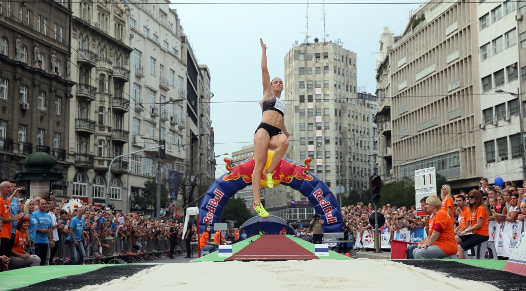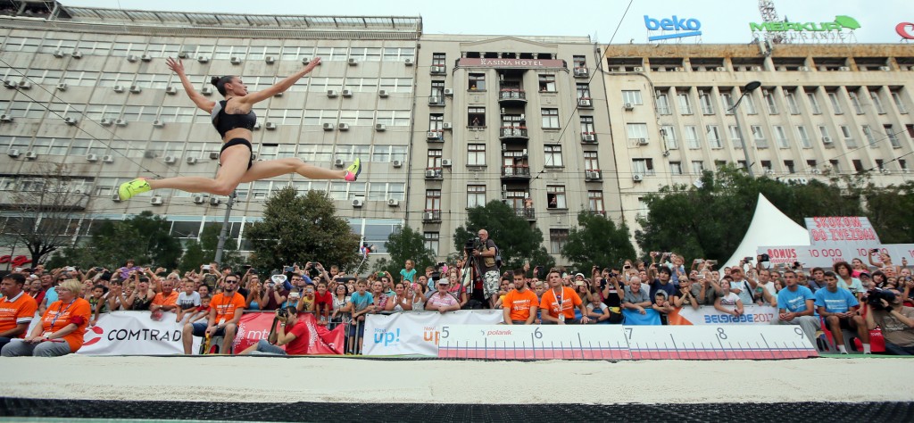 Atletski savez Srbije je u centru Beograda organizovao spektakularno takmicenje na otvorenom na Terazijama, gde je dogadaj dana nadmetanje u skoku udalj, na kome je nastupila Ivana Španovic.