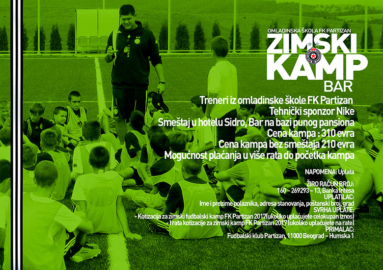 – Tvoji snovi su nadomak ruke, započni igru i postani šampion! Čekamo te na fudbalskom kampu omladinske škole FK Partizan Bar 2017! – stoji poziv na zvaničnom sajtu Partizana povodom organizacije Zimskog kampa u Baru.