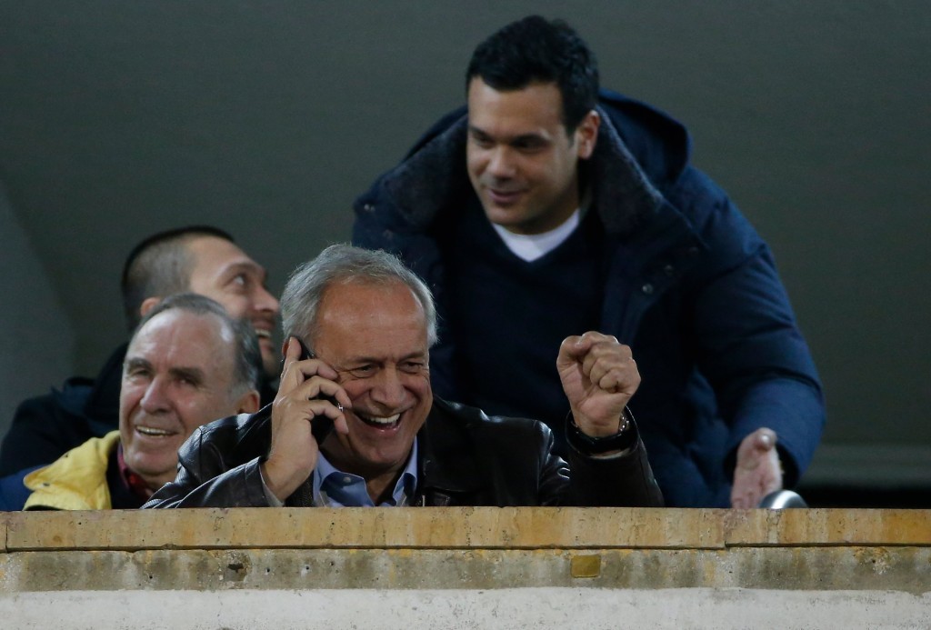 Novoizabrani predsednik Partizana Milorad Vučelić je blistao uz osmeh i trijumfalno stisnutu pesnicu, naravno uz svoje saradnike u svečanoj loži.
