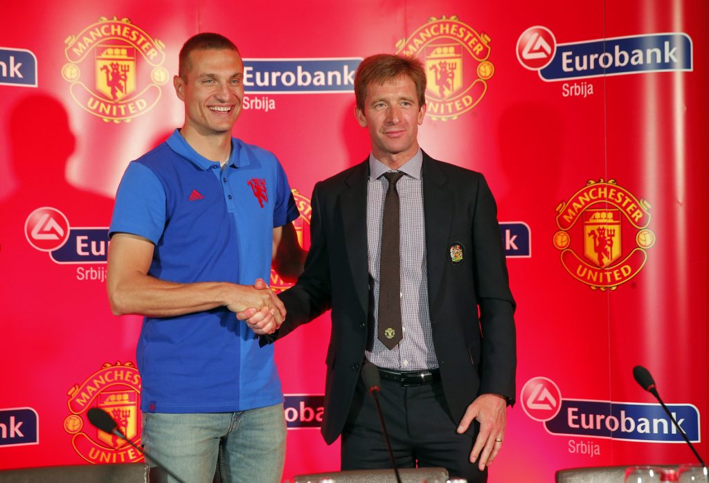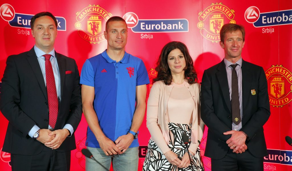 Bivši kapiten Crvene zvezde i Mančester junajteda Nemanja Vidić bio je gost ‘Eurobanke’ u Beogradu povodom saradnje ove firme sa Mančester junajtedom.