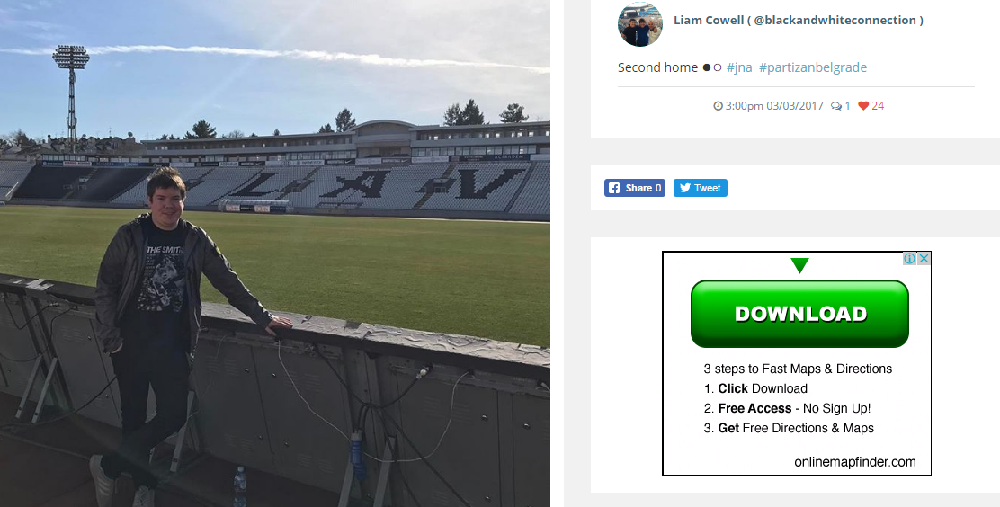 Navijač engleskog Njukasla Lijam Kovel je, verovali ili ne, uradio nešto što ne čine ni mnogi ovdašnje pristalice crno-belih – kupio sezonsku kartu za istočnu tribinu stadiona u Humskoj.