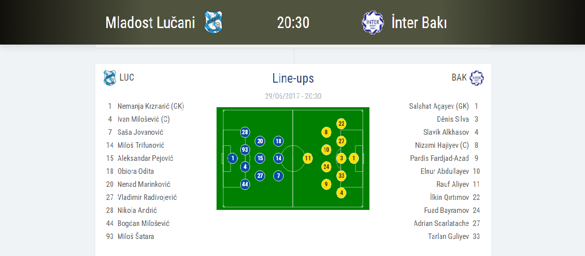 Istorijsko veče čeka fudbalere lučanske Mladosti. Od 20.30, ekipa Nenada Milovanovića debituje u evro kupovima a prvi protivnik će im biti azerbejdžanski Inter iz Bakua.