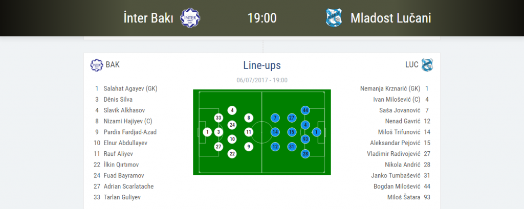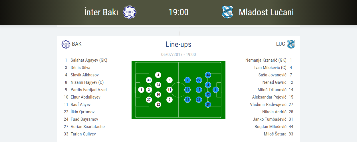 U isto vreme, Mladost iz Lučana gostuju Interu u Azerbejdžanu. Naš predstavnik je prvi meč izgubio rezultatom 3:0 i treba pravo čudo da se dogodi da bi se Mladost plasirala u drugo kolo kvalifikacija.