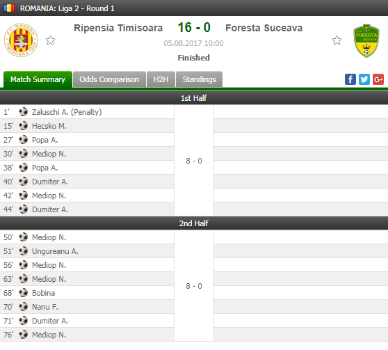 Naime, Ripensia iz Temišvara dočekala je Forestu i pobedila je sa neverovatnih 16:0. Golove za tim iz komšiluka postigli su Zaluši, Hečko, Popa dva, Mediop šest, Dumiter tri, Ugureanu, Babina i Nanu. Pogledajte sliku koju smo do sada mogli da vidimo samo u Kupu Estonije kada je reč o Evropi.
