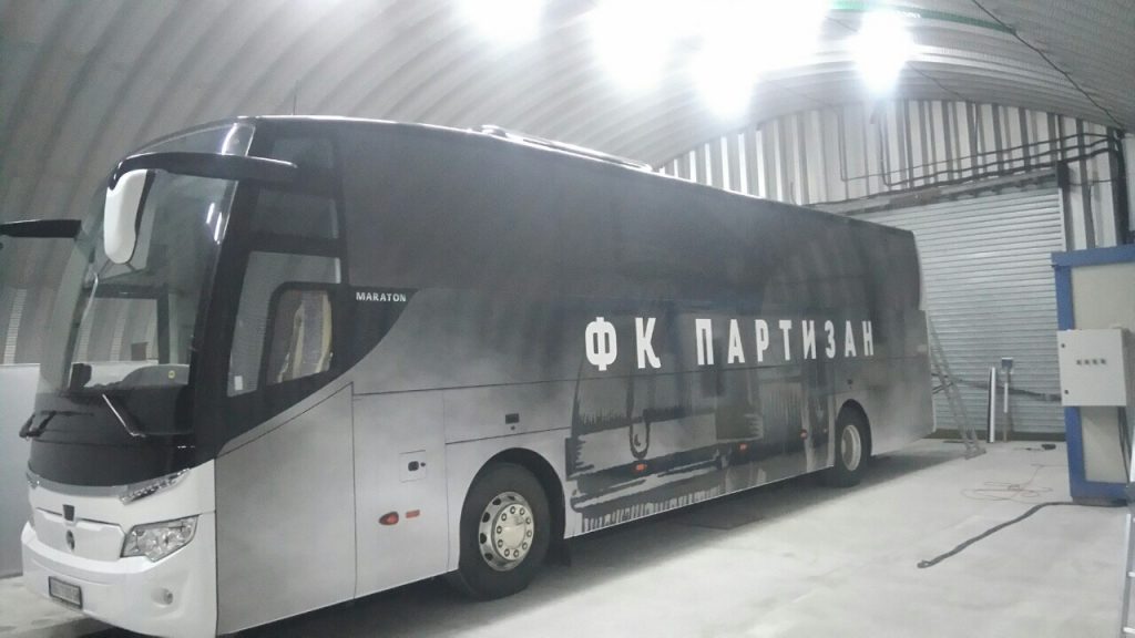 Prevozno sredstvo crno-belih će biti i više nego prepoznatljivo, sa jedne strane nalazi se veliki grb Partizana, a sa druge parni valjak, simbol kluba iz Humske.