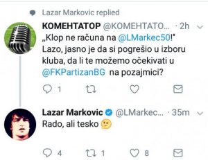 Na pitanje da li dolazi u Partizan na pozajmicu, Marković je napisao: ‘Rado, ali teško’.