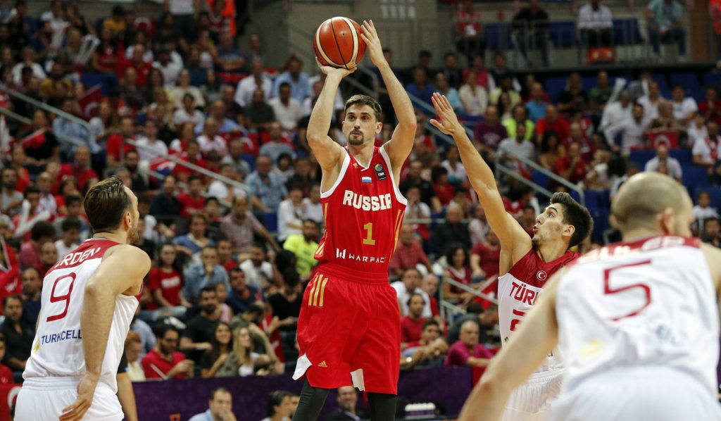Rusi su bolje otvorili meč i na krilima Timofeja Mozgova vodili nakon prve četvrtine sa 20:15. Turci su se konsolidovali u drugoj deonici, Džedi Osman se raspucao i na odmor se otišlo sa svega 3 poena prednosti za reprezentaciju koju sa klupe predvodi Sergej Bažarevič.