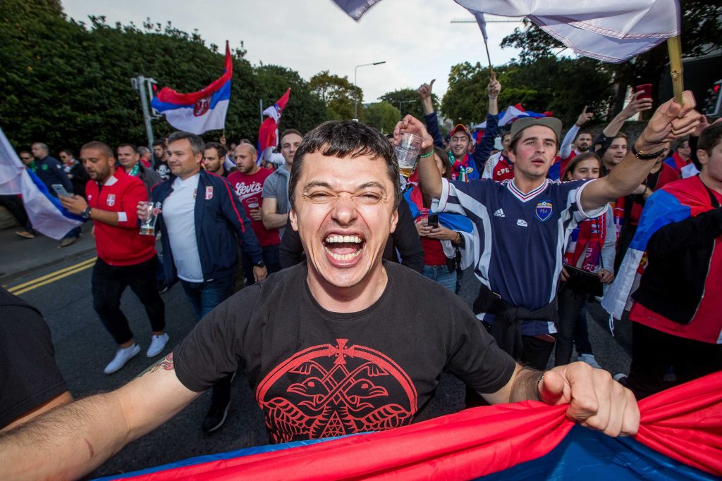 Fenomenalna atmosfera vladala je pre početka utakmice kako na ulicama Dablina, tako i na nacionalnom stadionu gde su zajedno stajali navijači Irske i Srbije.