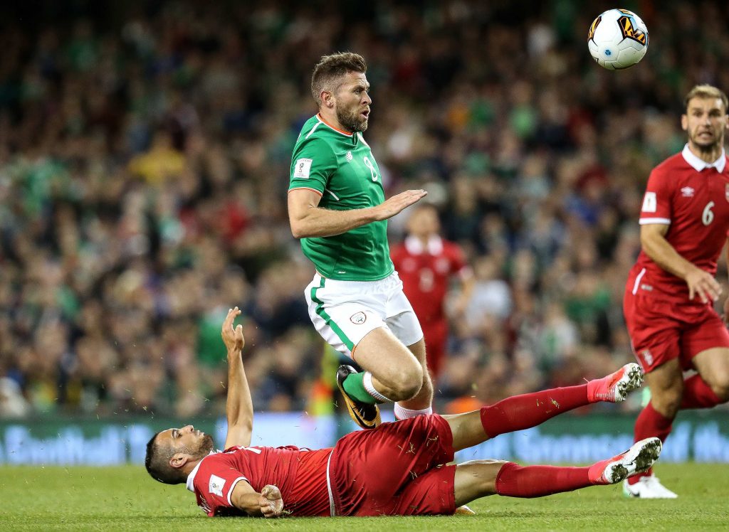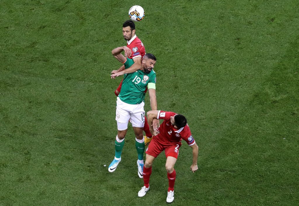 IrelandÕs Wes Hoolahan with Filip Kostic of Serbia