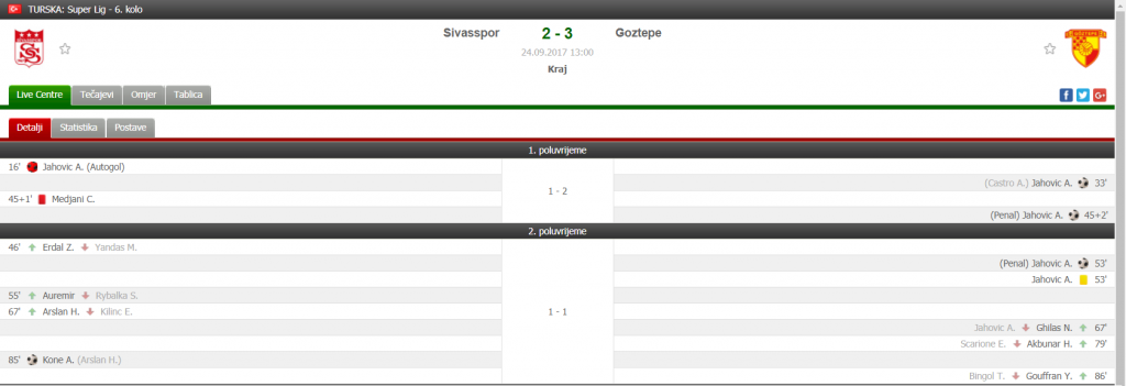 U okviru turske Superlige Goztepe je gostovao Sivasporu, a fudbaler gostiju Adis Jahović je bez ikakve sumnje zaradio epitet „čovek utakmice“.