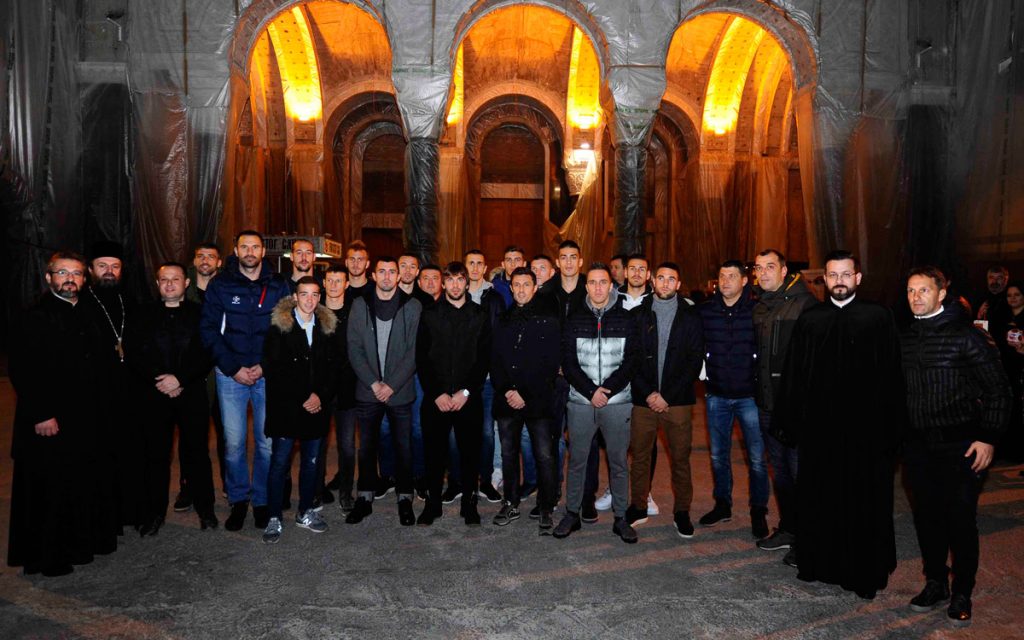 Naša delegacija uživala je u prilici da upozna srpsku istoriju, život i događaje koji su predstavljeni u mermeru, reljefima, ukrasu, mozaiku i freskama u Hramu. Ova lepa poseta ulila je našim fudbalerima i stručnom štabu dodatnu snagu pred važne mečeve koji ih očekuju.