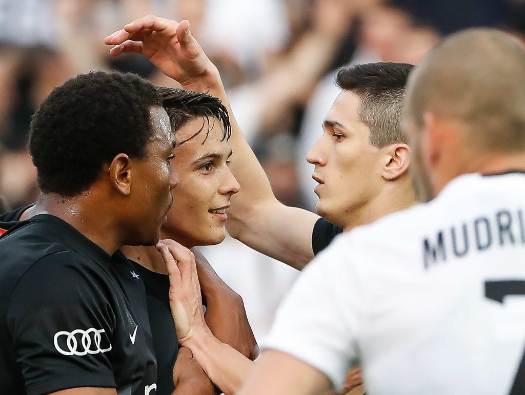 Ipak, slika koja je obeležila prvo poluvreme jeste ona na kojoj je trener crno-belih Miroslav Đukić, a pored njega policajac u punoj ratnoj opremi. Moglo bi se reći da je strateg crno-belih bolje čuvan od Leandre Tavambe.