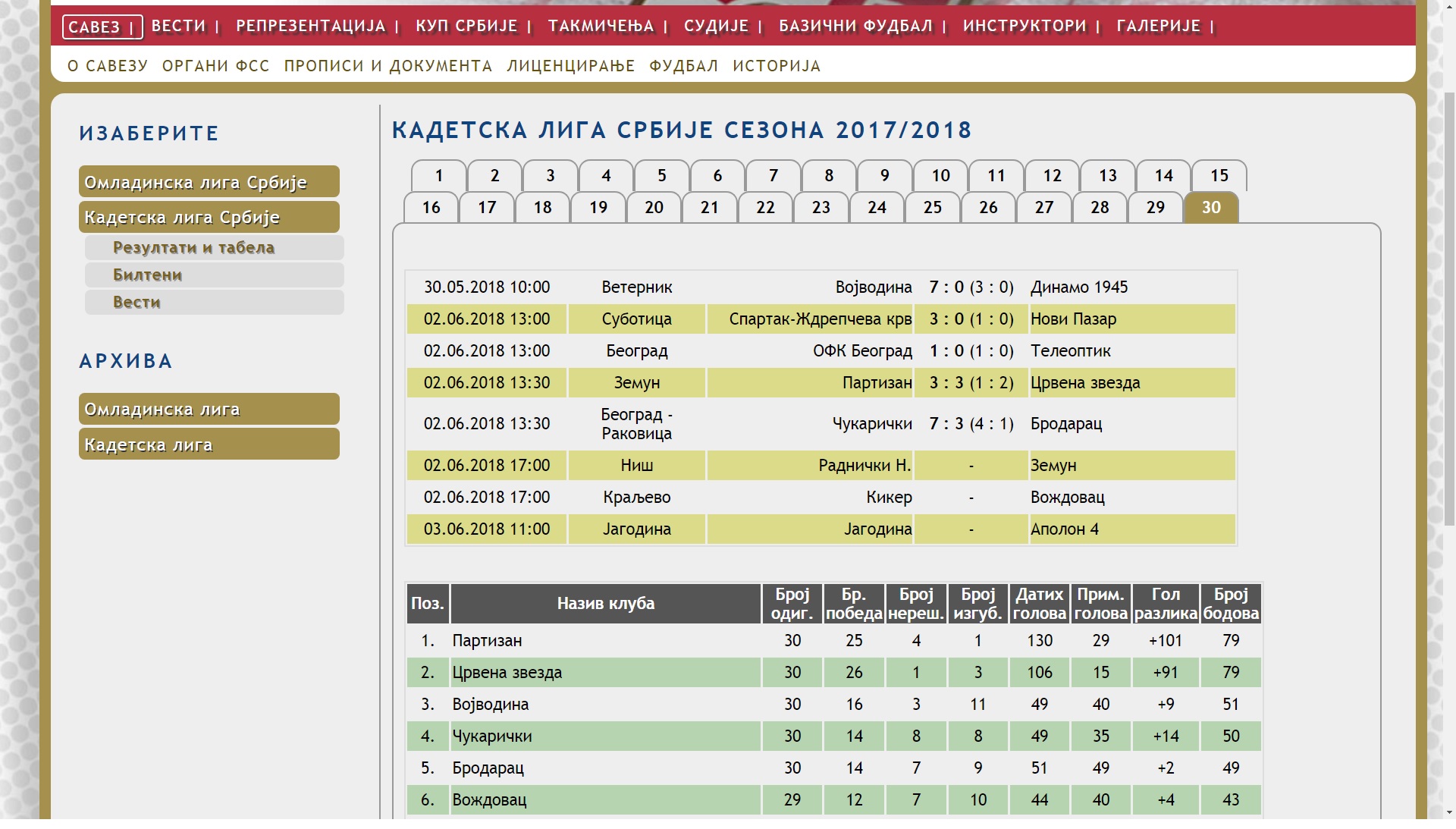 Sa druge strane, čini se da tabela na sajtu FSS ne računa međusobne duele, pa je tako Partizan zbog bolje gol razlike (+101 naspram +91) ispred Crvene zvezde?!