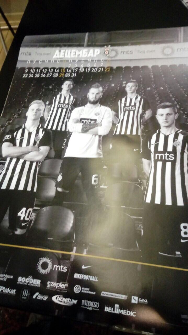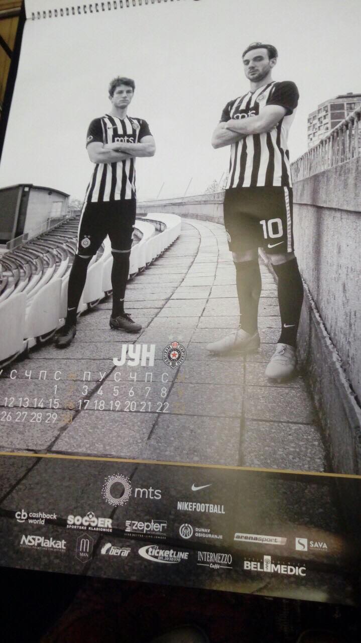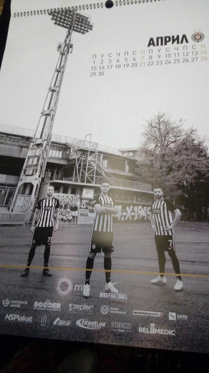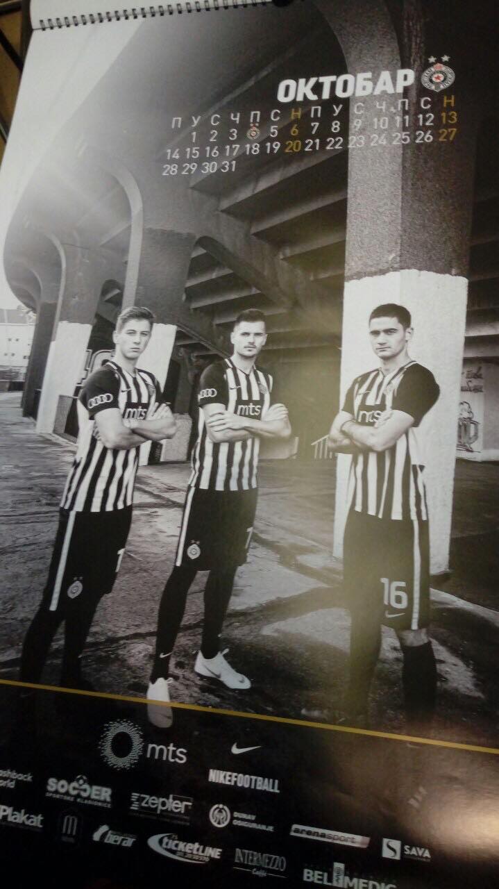 Navijači kluba iz Humske ulice moći će tokom narednih 12 meseci da zidove svojih domova ukrase fotografijama ljubimaca. Igrači Partizana pozirali su fotografima, a sve su izrađene u crno-beloj formi. Tu časta da budu na zasebnoj stranici dobili su trener Zoran Mirković, kapiten Saša Ilić i golman Vladimir Stojković.