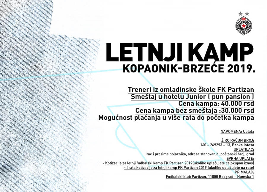 Fudbalski klub Partizan će i ove godine organizovati tradicionalni fudbalski kamp Omladinske škole.