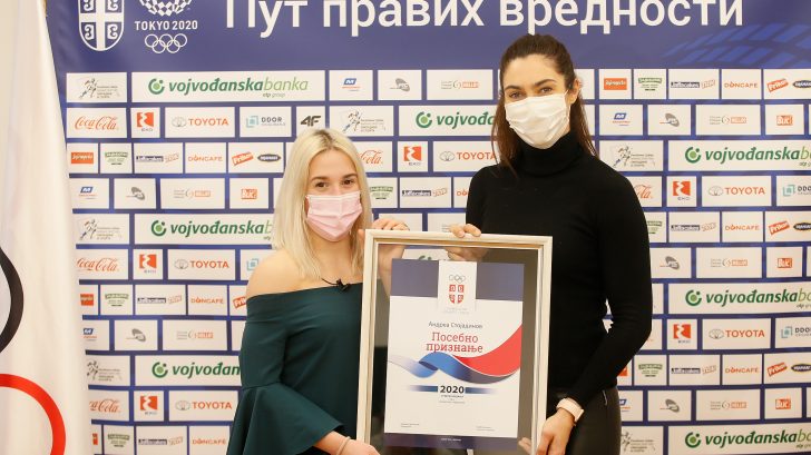 Specijalno priznanje Olimpijskog komiteta Srbije za 2020. godinu, koje je dodelila potporedsednica OKS Milica Mandić, dodeljeno je mladoj džudistikinji Andrei Stojadinov koja je u roku od mesec dana osvojila tri medalje na evropskim prvenstvima. Specijalno priznanje Andrei uručila je potpredsednica OKS, Milica Mandić. Srebrna medalja na Evropskom prvenstvu za seniore, bronzana medalja na Evropskom prvenstvu za mlađe seniore, kao i zlato na Evropskom prvenstvu za juniore jasno govori zašto specijalno priznanje Olimpijskog komiteta Srbije za 2020. Godinu odlazi u ruke Andree Stojadinov.