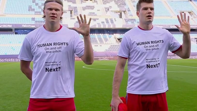 – Ljudska prava, na terenu i van njega, Norveška, Nemačka – ko je sledeći, jasna je aluzija da su im se pridružile kolege iz nemačkog tima koji su pre svog prvog meča u kvalifikacijama takođe na isti način poslali poruku svetu o kršenju ljudskih prava u Kataru.