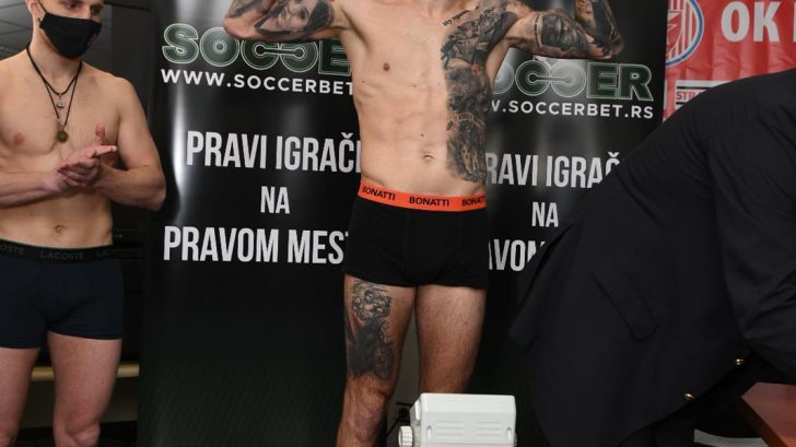 Merenje ratnika plemenite veštine koji će se u petak 23. aprila 2021. boriti za šampionski pojas u hotelu Kraun plaza u Beogradu održano je u prostorijama sportskog društva “Crvena Zvezda”.