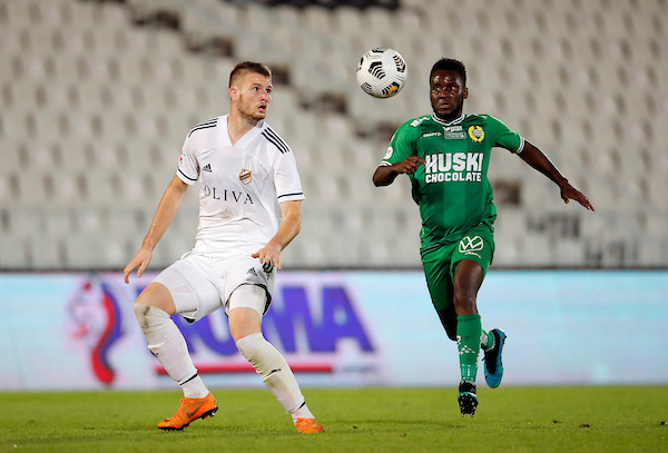 U 35. minutu Aleksa Janković je sjajnim solo prodorom šutirao, golman Dovin je uspeo da odbrani šut, ali se lopta odbila do Ndiajea koji je pogodio stativu i tako propustio veliku priliku, ali se vrlo brzo iskupio. Uspeo je Senegalac da sačuva loptu u 42. minutu i progirao kapitena Docića koji je doveo svoj tim u prednost.