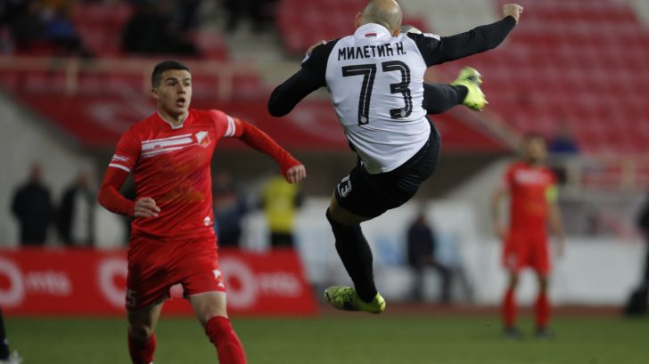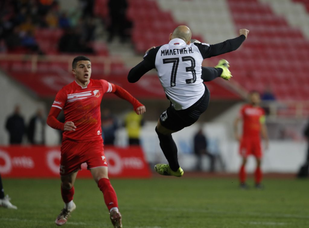 Sjajan je od samog starta mladi Milovanović, imao je priliku u 33. minutu, šutirao je glavom, ali je lopta otišla preko prečke. Ipak, nagrada za njegov trud stigla je u 39. minutu kada je pogodio za vođstvo crno-belih.