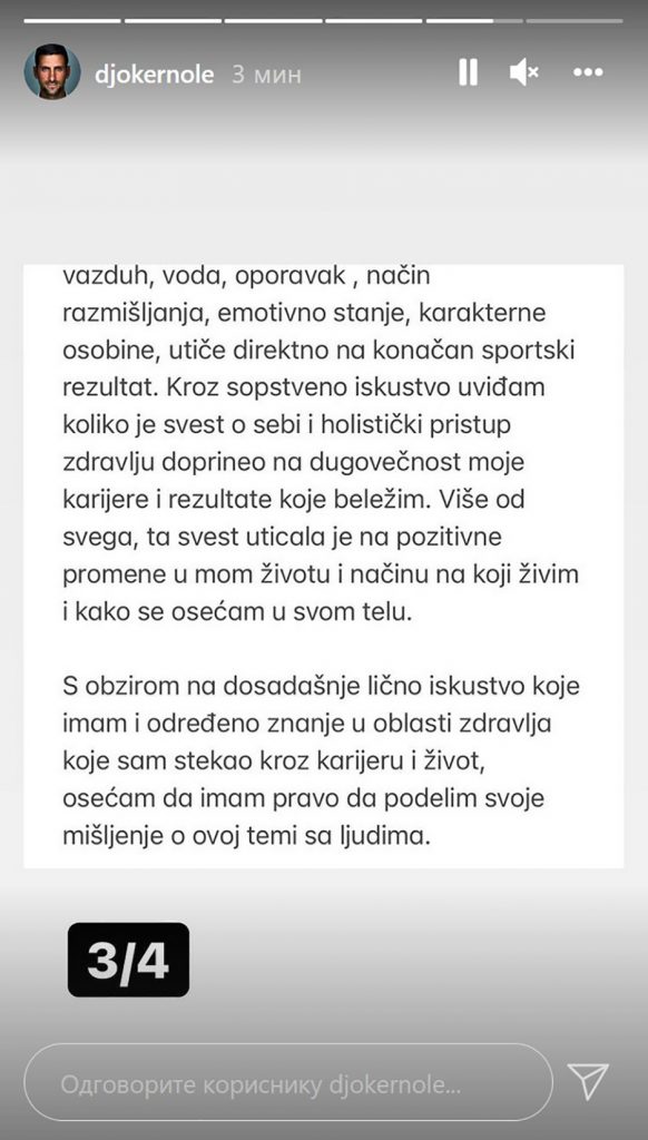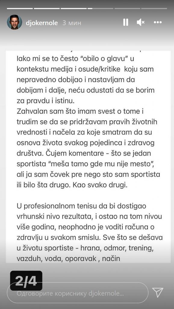 Sada je Novak odlučio da svoje mišljenje izrazi malo opširnije: