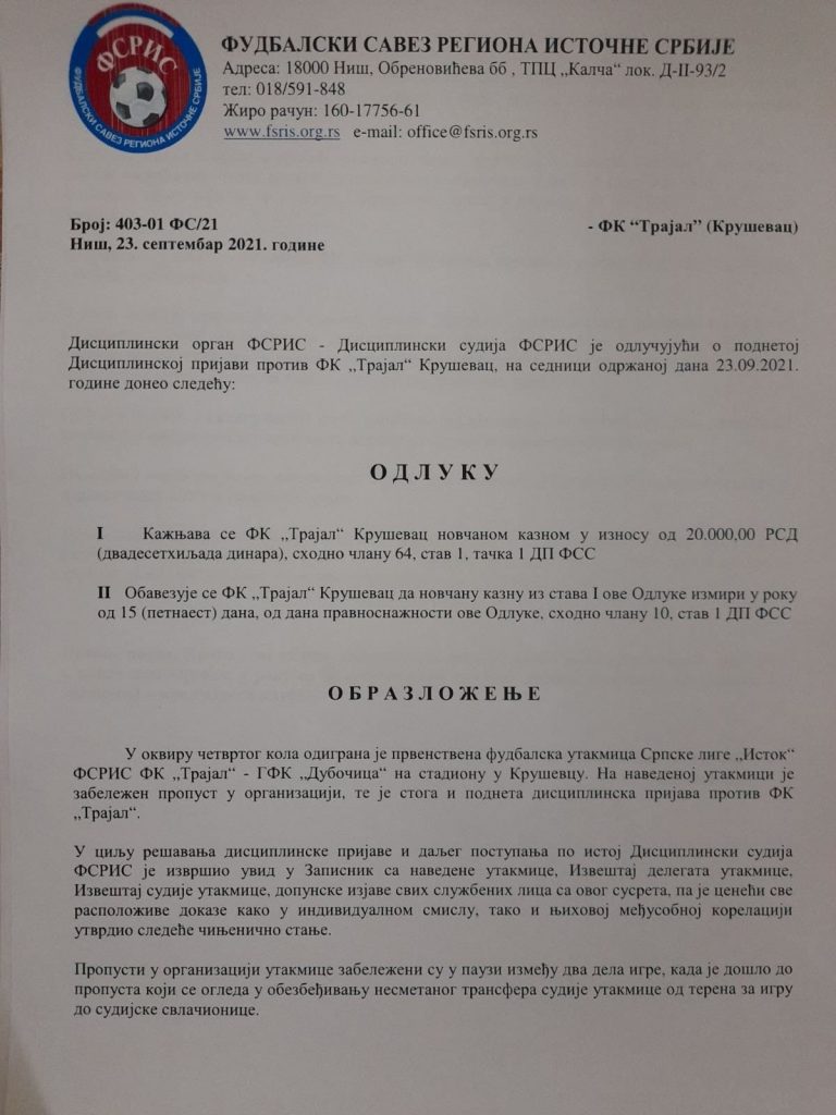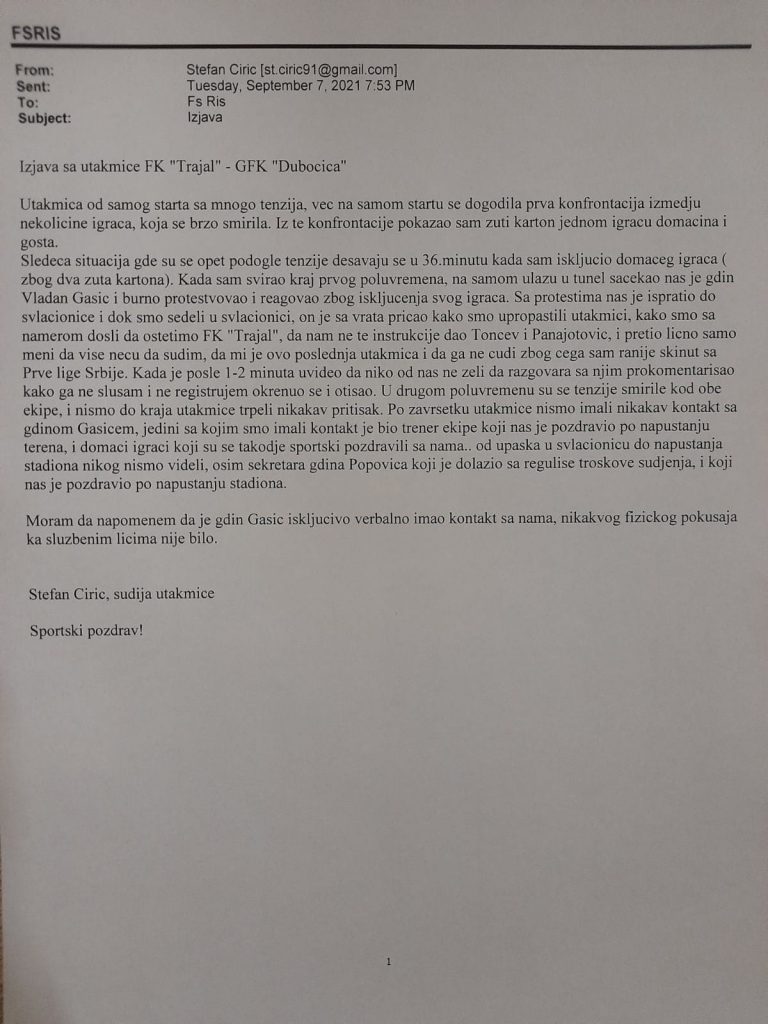 Ovakvi događaju navode ljude na razmišljanje da Disciplinske komisije fudbalskih saveza reaguju proizvoljno i po nalogu ljudi iz vrha Fudbalskog saveza Srbije, zašta smo dobili potvrdu nakon uvida u izveštaje sa utakmice FK Trajal – GFK Dubočica, koja je odigrana u Kruševcu u okviru četvrtog kola Srpske lige „Istok“. Za pretnju sudijima i verbalne napade Gašića, FK Trajal kažnjen je sa samo 20.000 rsd, a Tončevi za ulazak u svlačionicu suspendovani na devet odnosno šest meseci vršenja sportskih funkcija u fudbalu.