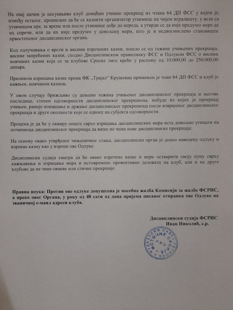 Činjenica je da istina nikada ne može da se sakrije, da uvek ispliva na videlo. Postavlja se pitanje na osnovu čega Disciplinska komisija donosi takve odluke i kažnjava? Trebalo bi po Pravilniku, ali koji se očigledno ne tumači isto za sve, već ishod zavisi od dobre volje moćnika iz FSS-a. Da li je vreme da se stvari u fudbalu postave kako treba, transparentno i fer, a ne da se vrše malverzacije i uklanjaju ljudi koji se bore za prave vrednosti i kvalitetan sport u Srbiji? Da se, iako se napravi neka greška, pravedno i jasno sprovodi disciplinski proces?