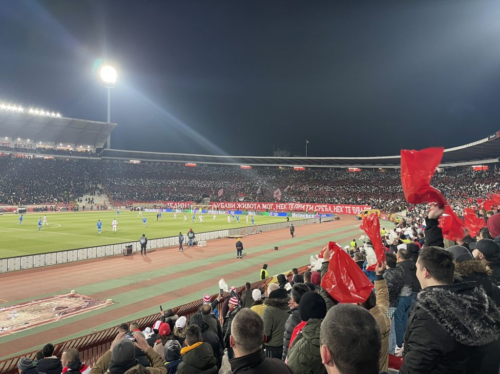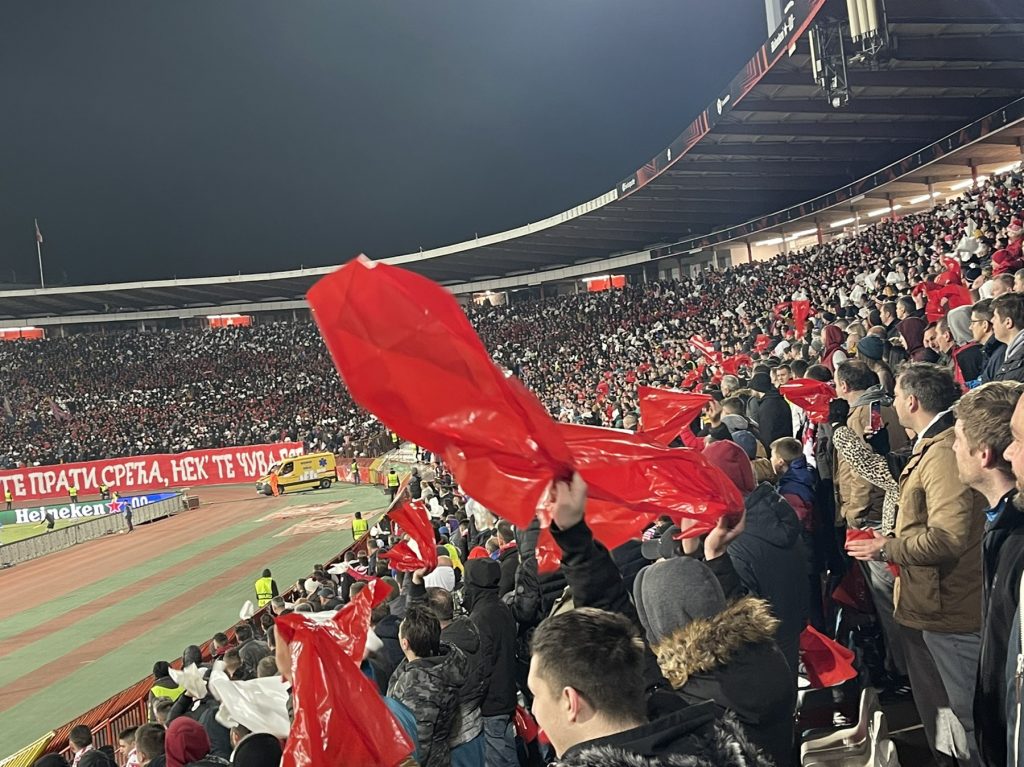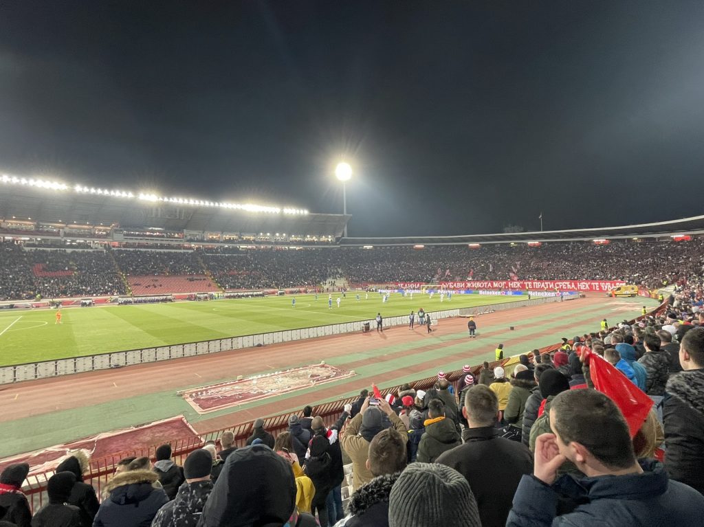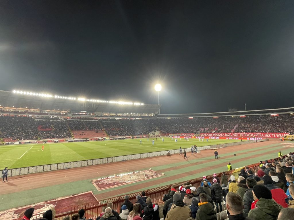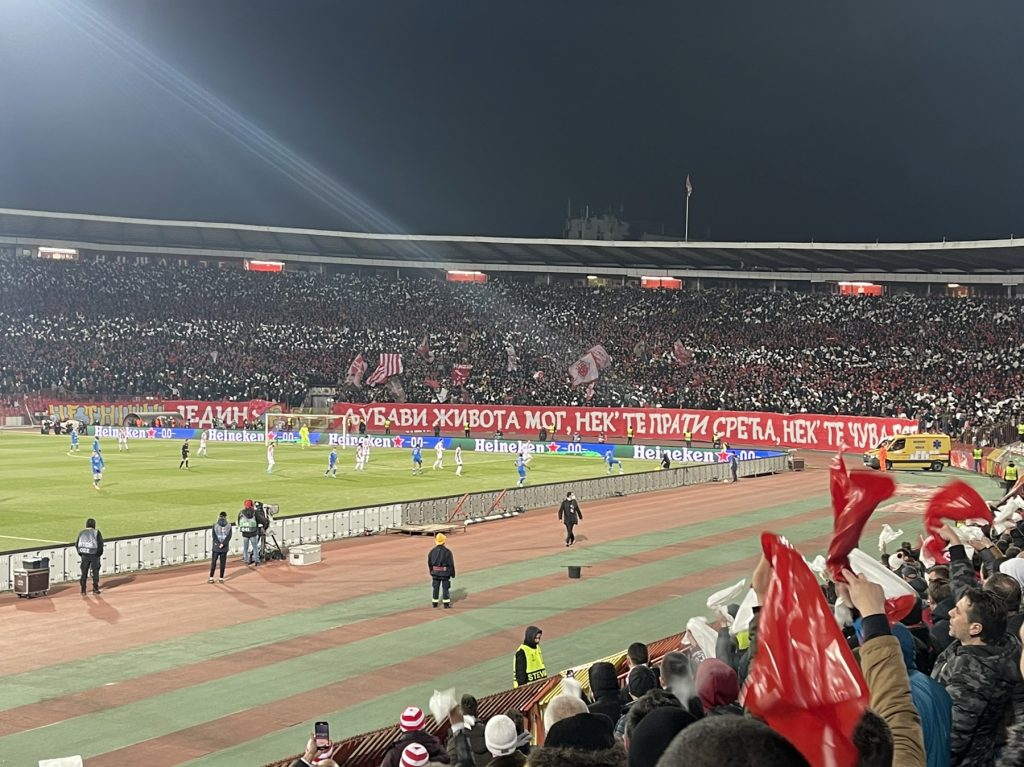 Crvena zvezda igra revanš meč osmine finala Lige Evrope protiv Rendžersa, a i pored tri gola zaostatka koja crveno-beli imaju, atmosfera skoro nije bila bolja na najvećem srpskom stadionu. Gotovo je cela Marakana popunjena, a od pevanja se teško mogla čuti i himna tog takmičenja, kao i sudijska pištaljka.