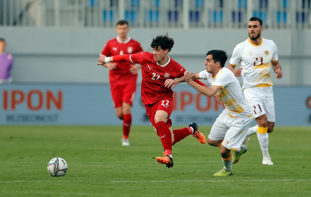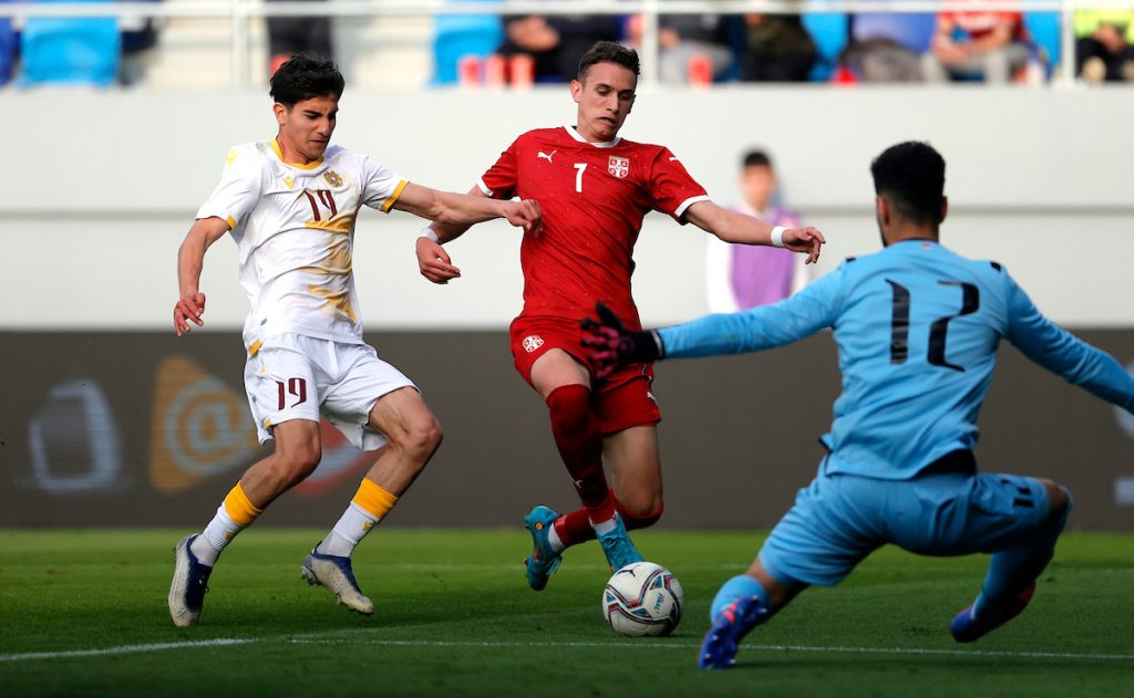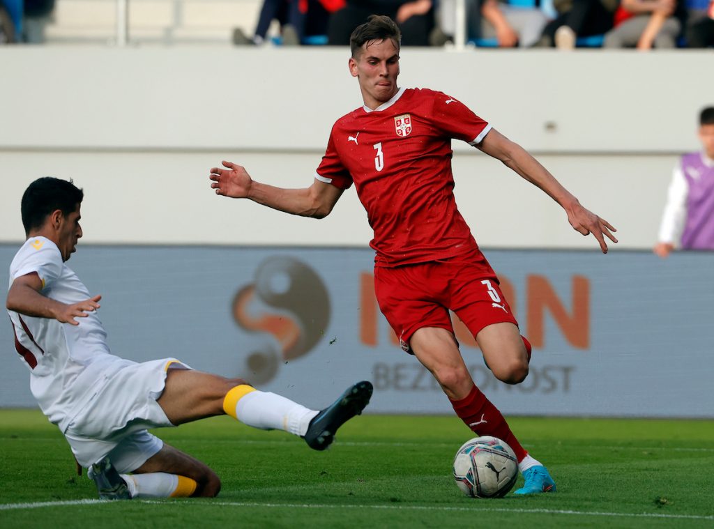 ‘Orlići’ su krenuli ofanzivno od prvog sudijskog zvižduka, a u prvom poluvremenu jednu od najboljih prilika imao je Dimitrije Kamenović, kome je malo falilo da pogodi za vođstvo Srbije. U samom finišu prvog dela igre, Nikola Terzić je sjajno centrirao iz kornera, a Kamenović je sjajno pogodio i obradovao sve navijače koji su došli da podrže našu mladu reprezentaciju.