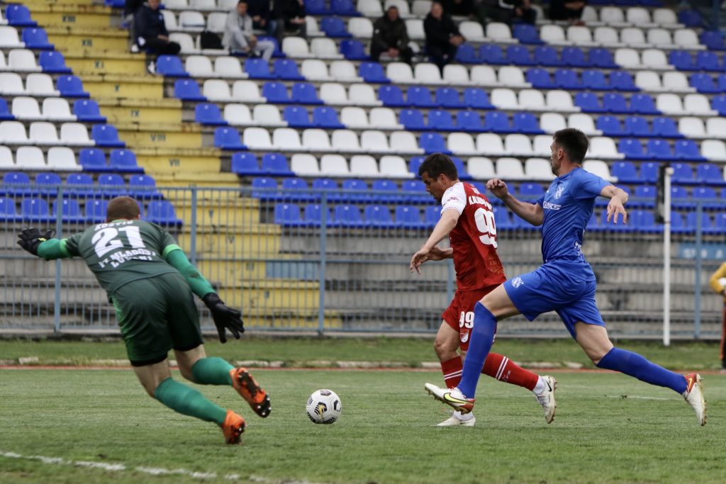 Domaći su mogli da povedu već u desetom minutu, ali nisu bili sigurni sa bele tačke, kada je Bojović pogodio samo stativu.