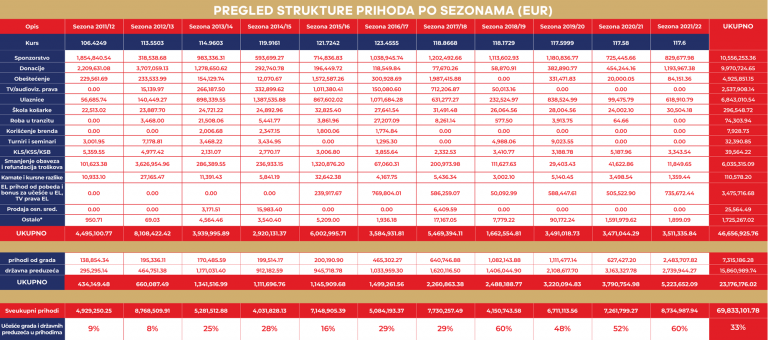 Na 12 – godišnjem nivou to učešće iznosilo je 33 procenata ukupno do sada za 11 sezona, imajući u vidu da sezona 2021-2022 još nije završena (završava se 30.06.2022. godine).