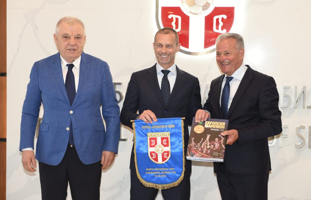 Gost Fudbalskog saveza Srbije u Sportskom centru FSS u Staroj Pazovi bio je predsednik UEFA Aleksander Čeferin. Prvi čovek evropskog fudbala došao je u društvu jednog od najbližih saradnika, direktora nacionalnih asocijacija u UEFA Zorana Lakovića. Uvažene prijatelje iz UEFA ugostili su zamenik predsednika FSS Nenad Bjeković, generalni sekretar Jovan Šurbatović, počasni predsednik Tomislav Karadžić, direktora A tima Stevan Stojanović i selektor A reprezentacije Dragan Stojković.