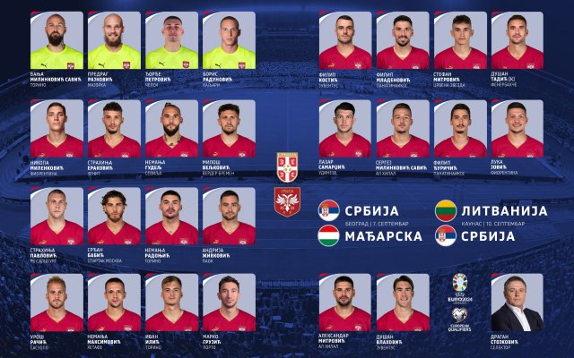 Selektor reprezentacije Srbije, Dragan Stojković Piksi objavio je konačan spisak igrača na koje će računati u kvalfikacijama za Evropsko prvenstvo  protiv Litvanije Mađarske.  Tu su novopečeni igrači Al Hilala, ali i mladi golman koji je nedavno potpisao za Čelsi.