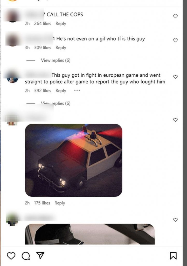 Navijači Partizana su masovno ostavljali gifove sa policijskim automobila, sirenama, dok su uz to dodavali i emotikone istih karakteristika, aludirajući na slučaj sa jednog derbija.